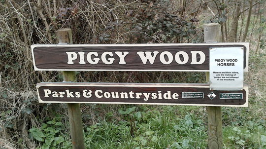 This area of ancient woodland is a vital local nature reserve and wildlife site and is actively managed to encourage plants and animals including bluebells, butterflies, crickets, blackcaps, chiffchaffs, coal tits and goldcrests. Trees and shrubs include larch, Douglas fir, Scots pine, hawthorn, hazel and crab apple. The hazel is coppiced to provide sticks for traditional woven fencing. Access is from Harvest Ride.