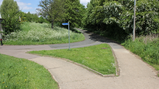 A narrow woodland following the line of a stream. Mostly you can only walk alongside the wood, but it has attractive shrubs and trees attracting many birds. Some patches of wild-flowers add extra colour and interest. A childrens playground is next to the wood.