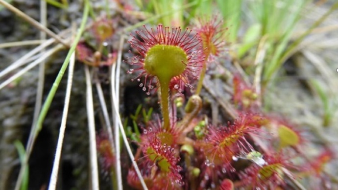 A whole range of plant communities can be found here too, from mountain sorrel and hard shield-fern in the rich crags, to wildflowers like alpine clubmoss and the rare grass orange foxtail in the uplands. In the lower wetlands, look out for the fascinating sundew (pictured), a plant that has evolved to be carnivorous. Its preferred acidic habitat doesn’t provide enough nutrients, so the sundew lures passing insects in with glistening droplets of sticky ‘dew’ and then wraps its leaves around the prey, digesting it and absorbing the nutrients.