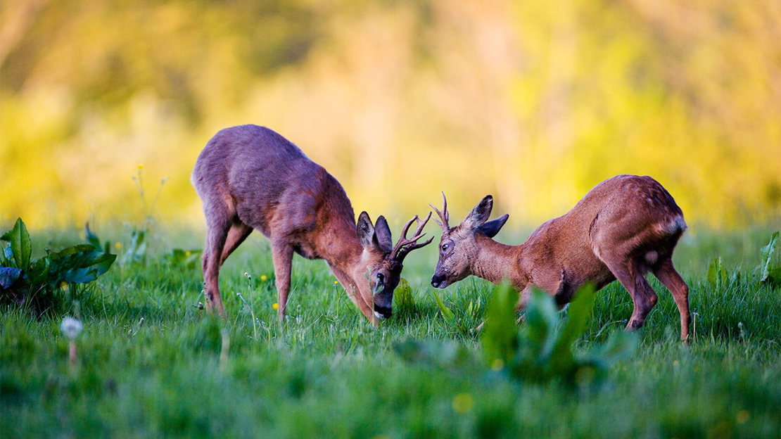 Red, fallow, sika and roe deer all use their antlers to fight for access to females. When ready to breed, rival males will lock antlers, pushing and twisting until the weaker of the two flees, leaving the victor free to mate. This behaviour is known as rutting.