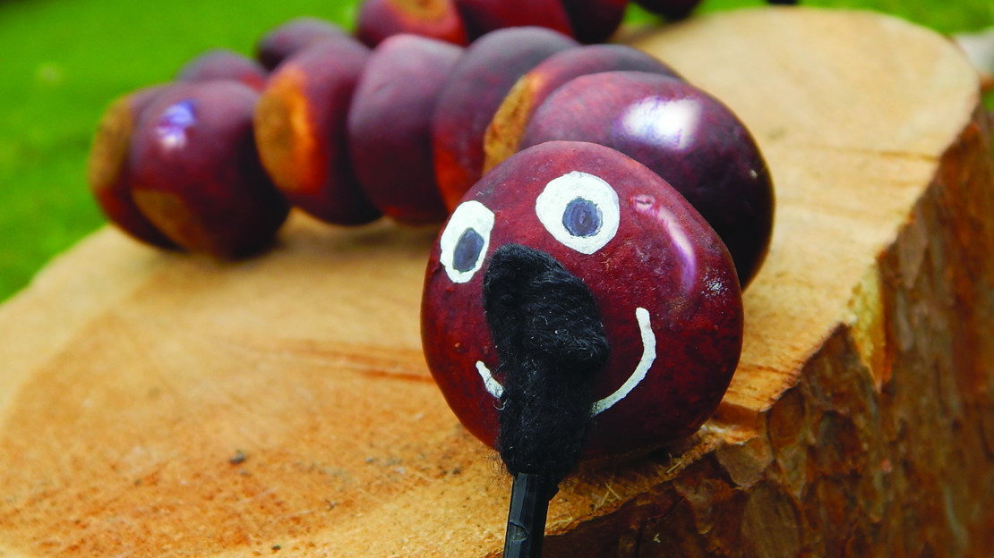 Collect some conkers of all shapes and sizes. Be sure to pick up a few of the spiky conker cases as well, but be careful – they are very prickly.