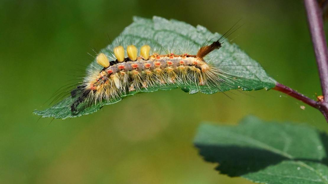 The hairs of this caterpillar can irritate the skin and should not be handled.
