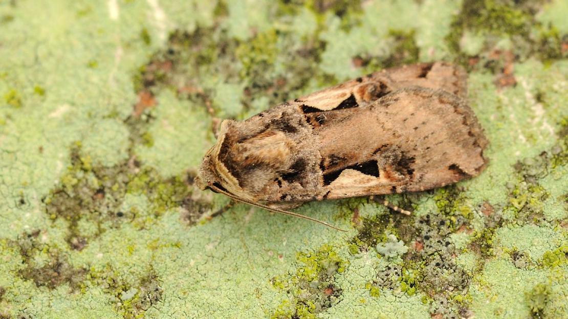 While it may appear brown and drab at first glance, this moth has a unique identifying mark to help it stand out from the crowd. Look for the dark rectangles in the middle of each forewing which are bisected by a pale V-shape, said to resemble a character from the Hebrew alphabet.