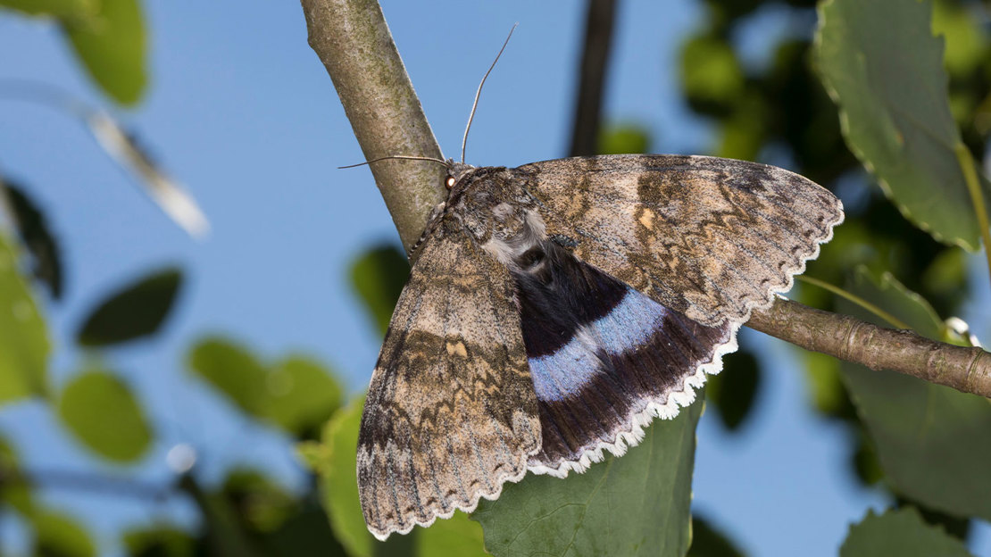 This secretly stunning moth can hide in plain sight thanks to the detailed bark-like patterning on its forewings. If you do manage to get close, it will reveal its true beauty when it flashes its crimson underwings.