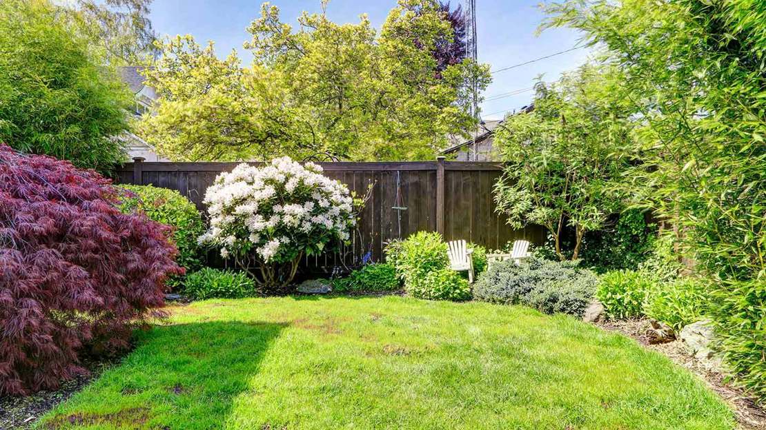 Although better suited for medium to large gardens, silver birch's compact, shallow roots do allow it to grow in tighter spots. This tree's light, open canopy enables grasses, mosses and flowers to grow beneath, and it's pretty bark is white all year-round.