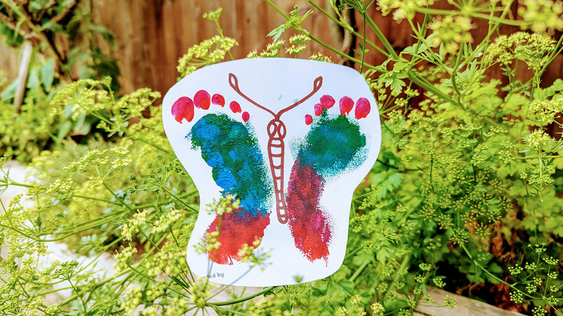 If you're looking for an easy craft to do with babies or toddlers, this footprint art is ideal. Start by drawing a butterfly body and antennae on some card. Next, gently apply paint to your child's feet and press them onto the card on either side of the body. (For less mess, do one foot at a time and clean in between.)