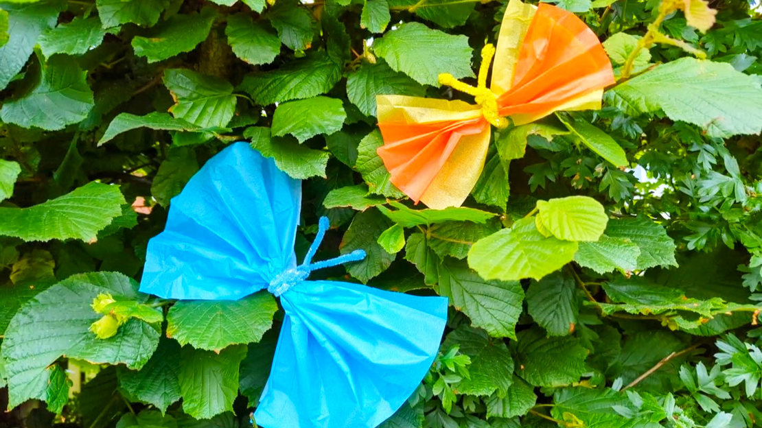 These delicate paper insects will look fabulous fluttering in the breeze! To make them, all you need is tissue paper, pipe cleaners and scissors.