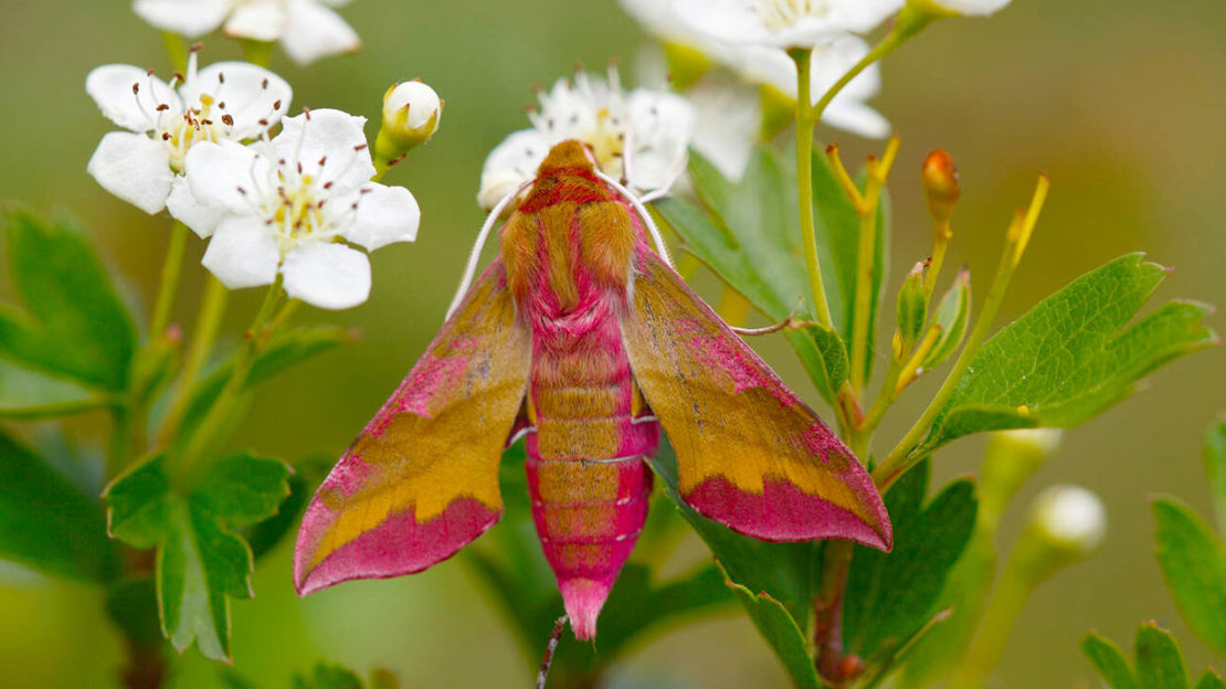 Despite their bright and colourful appearance, elephant hawk-moths aren’t poisonous to humans or animals.
