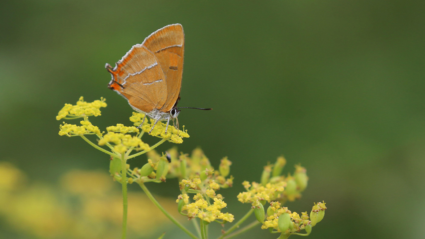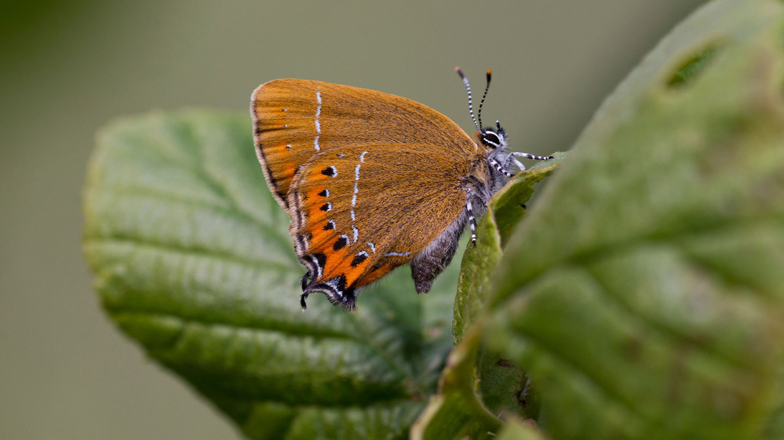 Though it spends most of its time up in the canopy, the female brown hairstreak will venture down to young blackthorn shoots to lay her eggs. This makes the butterfly extremely vulnerable to intensive land management practices such as hedgerow removal and annual flailing, which removes its eggs. The brown hairstreak is now so rare it’s found only in southern England and Wales, and mid-west Ireland.