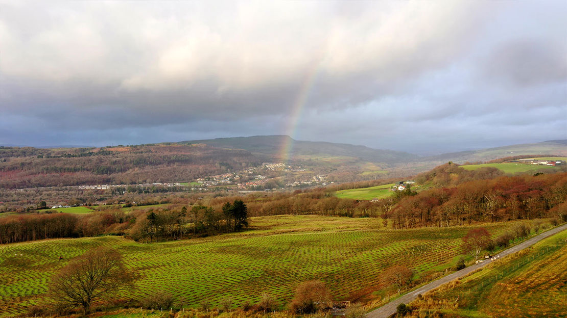 Drwy adfer mawndiroedd, rhostiroedd a choetiroedd hynafol yn ofalus, byddwn ni’n brwydro yn erbyn effeithiau newid hinsawdd, yn puro’r aer ac yn lliniaru llifogydd yn y dref islaw.