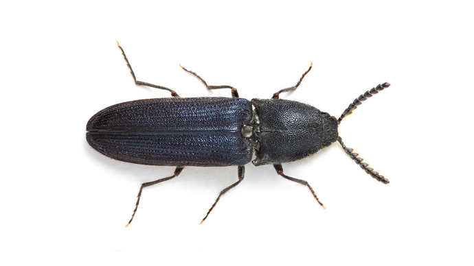 When threatened it catapults itself away rather than flies. It does this using a peg and groove on its thorax which it snaps together with a ‘click’ that flings the beetle into the air.