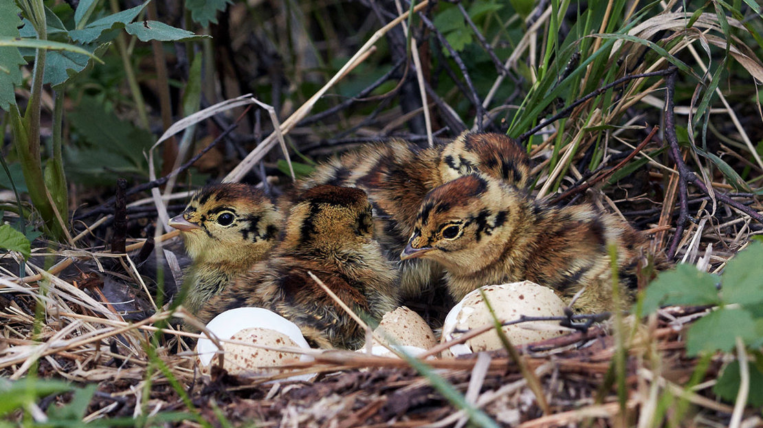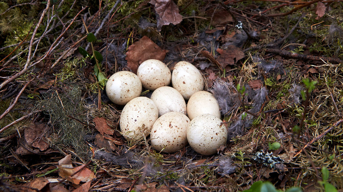 Nests are built on the ground in May, usually lined with moss and located in a discreet area surrounded with vegetation. Around 6-10 eggs are laid, which hatch after almost a month of incubation. Chicks become independent at about three months old.