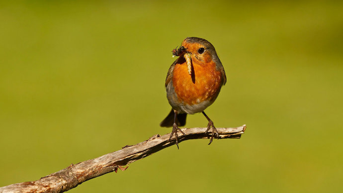 Robins are widespread and their population is thought to be stable. They are threatened by harsh winters, however, losing up to 10% of their body weight during just one freezing winter night. You can help robins build up their fat reserves during the winter by putting bird food, such as mealworms, on your garden bird table – they are a favourite for robins.