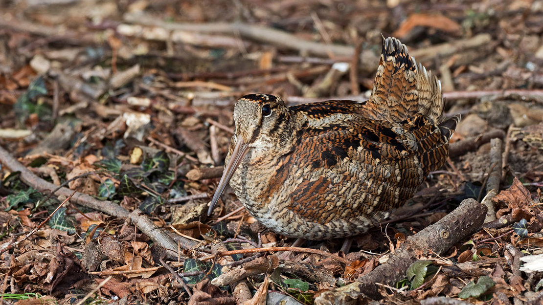 As woodcocks are nocturnal, spending their days safely tucked away in the dense undergrowth of the forest floor, chances of spotting them are slim. If you do happen to disturb one by accident, watch as it takes off in a zig-zag flight before falling back to the ground for safety.