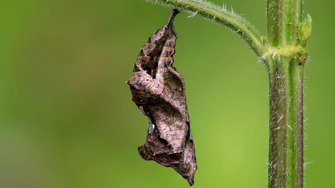 Female comma butterflies mate with several males to fertilise their eggs. They are able to distinguish between males that have fed on high-quality and low-quality plants and will favour the former. The fertilised female lays her eggs on the leaves of stinging nettles and other larval food plants. The eggs hatch after around five days and the caterpillars will feed on the leaves before undergoing pupation.