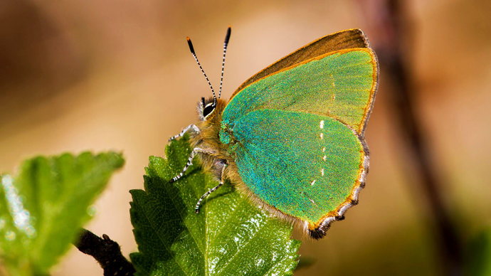The only green butterfly in the UK, this small but spectacular species can be seen fluttering through woodland clearings during the spring months.