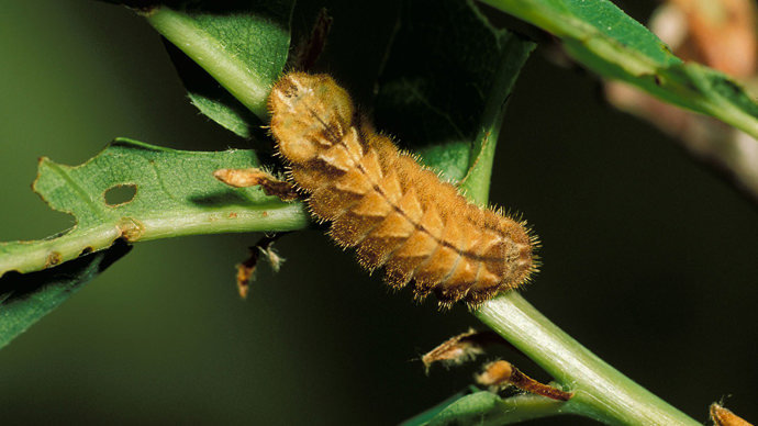 Caterpillars: brown and chunky with a deeper brown line along its back and paler oblique line along each side. It is covered in hairs and camouflages itself well against brown tree buds.