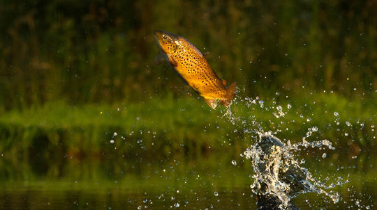 Salmon can leap over huge obstacles blocking their way. There are records of an Atlantic salmon jumping over a three-metre obstacle.
