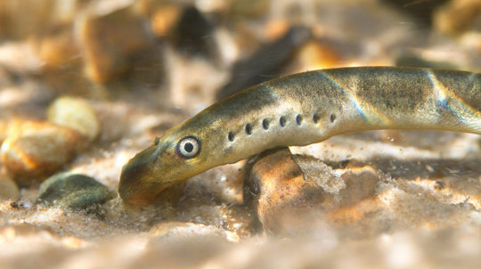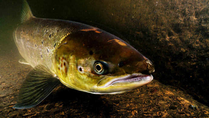 Atlantic salmon hatch in freshwater breeding grounds, developing for several years before migrating out to sea where they will spend most of their lives. When the time comes to breed, salmon return to the breeding grounds they were born in, travelling upstream. When they reach their destination, females lay eggs in grooves in the waterbed and males deposit sperm to fertilise them. The fish die soon after breeding.