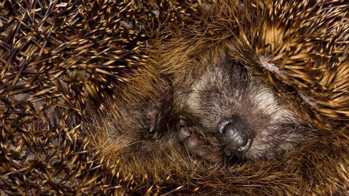 Hedgehogs spend much of their life asleep, hibernating through the winter months in a nest made from fallen leaves in a sheltered spot. They emerge in spring but will spend the day sleeping, becoming active after the sun has gone down.