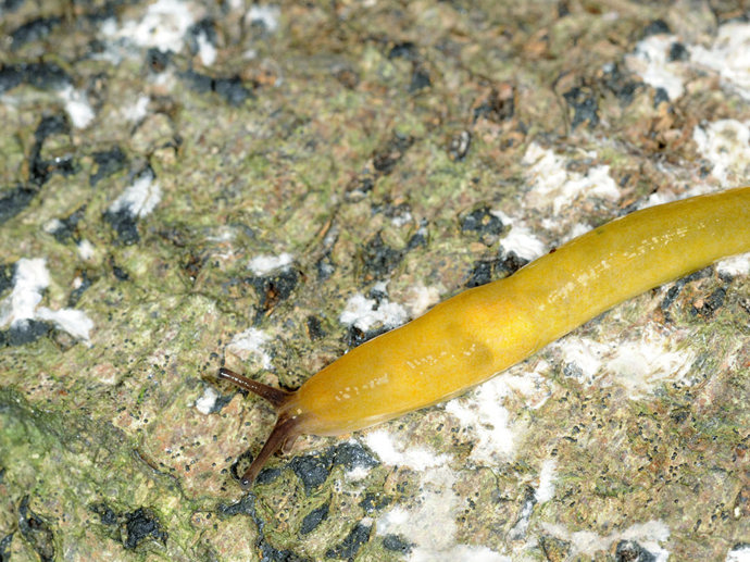 Look out for lemon slugs in autumn when they emerge from beneath the leaf litter to mate. You are most likely to see one feeding on mushrooms.