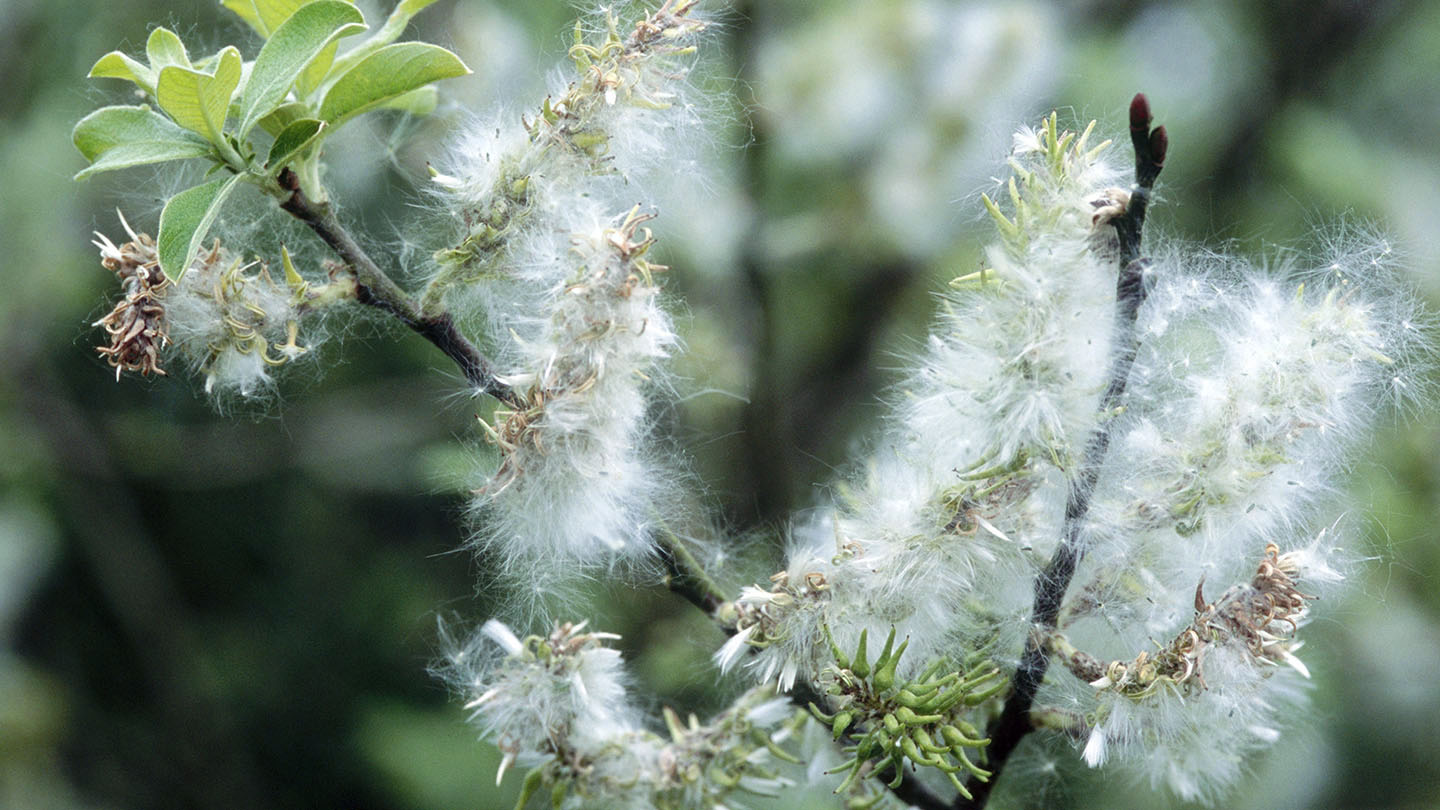 Once pollinated by wind, female catkins develop into woolly seeds. Most willows can also propagate themselves by lowering their branches to the ground, where they then develop roots.