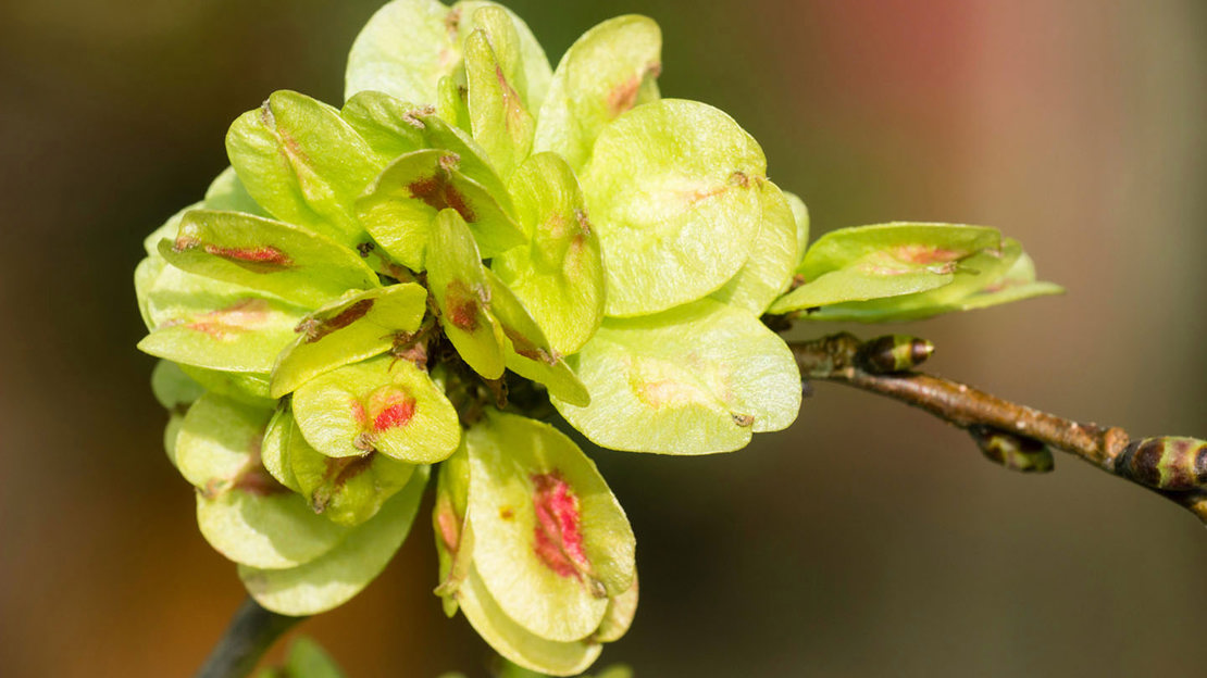 Pollinated by wind, they develop into small, winged fruits known as samaras. These are dispersed by wind.