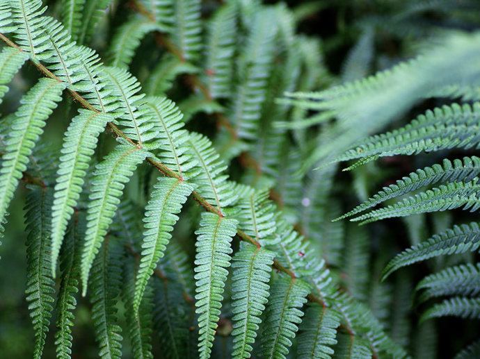 Leaves: light yellow-green initially, with hard fronds, becoming darker later in the year, 60–160cm long. The stem (rachis) at the base of the frond is densely covered in gold/rusty brown, shaggy scales known as remeta. The frond is bipinnate which means that not only is it divided into leaflets (pinnae), but those leaflets are also divided into leaflets called pinnules. The pinnae are broad and rectangular and measure 8–18cm long with the margin that's most toothed close to the tip.