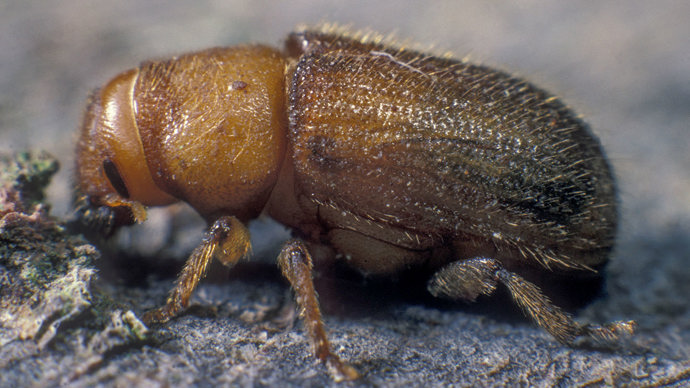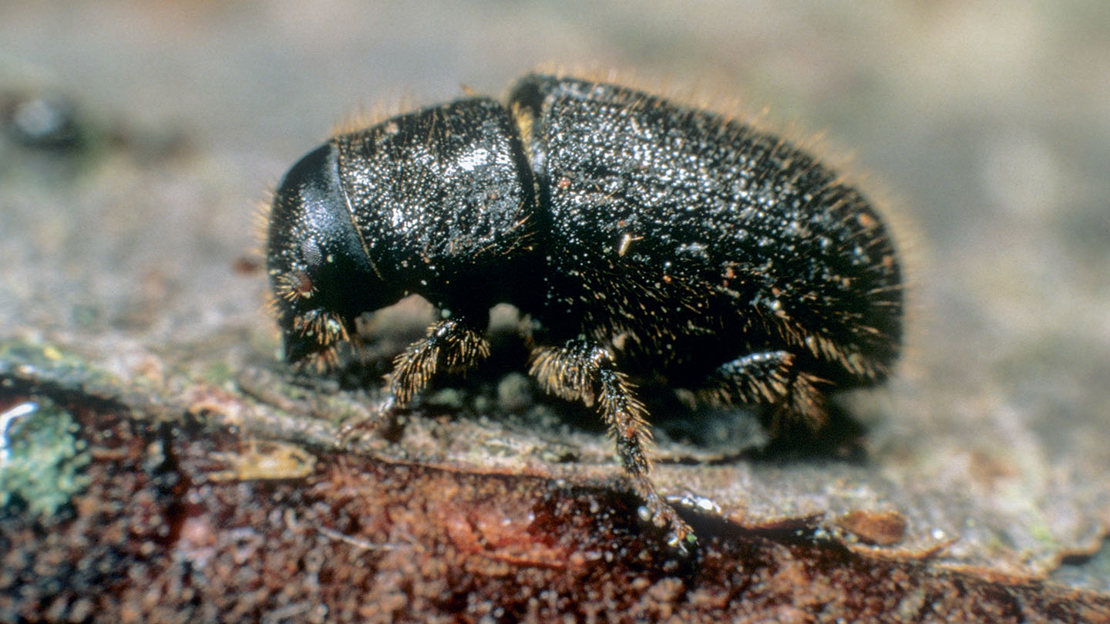 The great spruce bark beetle damages spruce trees by tunnelling into the bark. This pest was accidentally introduced into the UK in 1982 and now has become established in Western England, Wales and Southern Scotland.