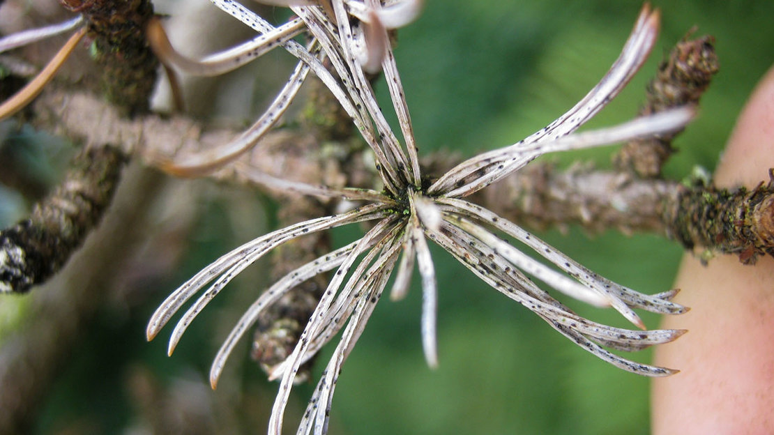 A fungal disease that attacks cedars and hemlock, Sirococcus tsugae can cause disfigurement and eventually death to shoots and branches.