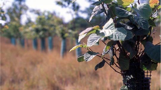 A mix of broad-leaf and coniferous trees, glade and open heathland. From the path glimpses of the wider heathland landscape can seen.