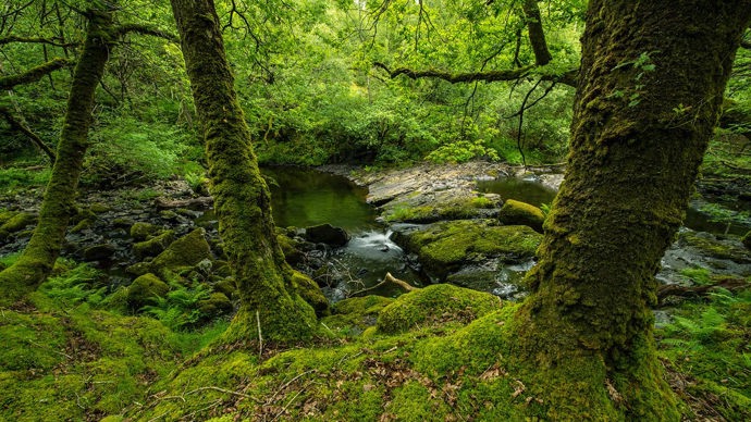The main entrance is at the lower end of the woodland where a double gate is located. From here, a footpath loop follows the valley of the Ceunant Llennyrch, starting fairly wide and level but becoming steeper as it rises towards the waterfall at the eastern end of the wood.
