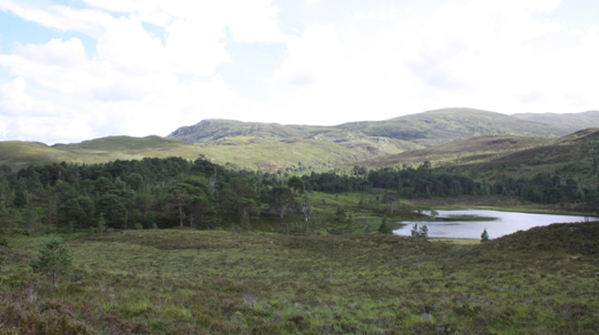 A Caledonian forest of 500ha in the Scottish Highlands where black grouse, crossbill, crested tits and red deer can be found. The forest is being expanded by planting forest species. The site includes the varied habitats of moorland, bog and loch.