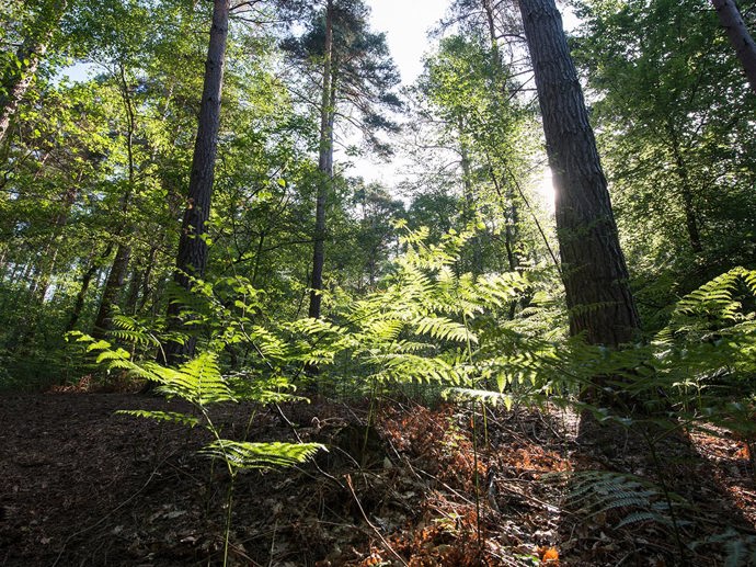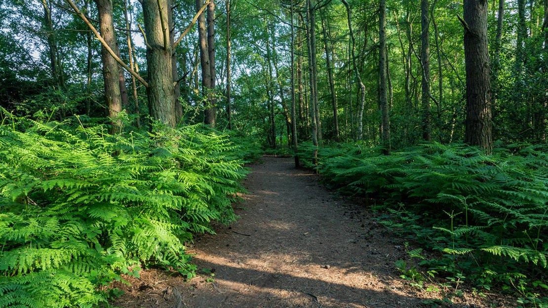 The site has a good network of wide rides and smaller paths. The main entrance leads onto a wide ride, which is level and stone-surfaced for around 800 metres. Beyond the surfaced section, the rides are covered by grass, other vegetation or bare soil. There are some steep sections, and surfaces may be muddy in wet weather, with some sections waterlogged throughout the winter. There are other smaller paths which lead to more remote parts of the wood. These are steep in places and may be partly blocked.