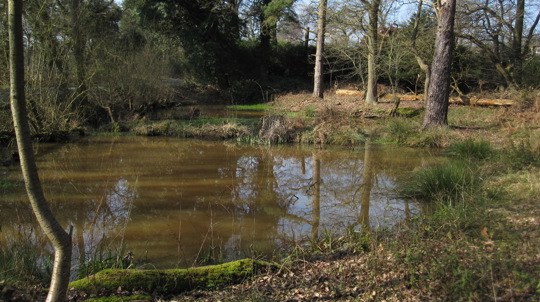 Owned by the local parish council, this 24 acre woodland is blessed with clearly marked trails & information boards. Some paths have wooden boards to protect the paths. Its a mostly broadleafed woodland (hornbeam, hazel, oak) with a few large pines.