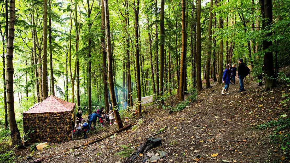 A public footpath runs inside the north-eastern boundary of the wood and follows an old track for the most part. The internal paths and tracks are unsurfaced and moderate to steeply sloping in parts. The path surfaces, particularly on the eastern side of the hill, are loose shale and can be slippery in both wet and dry conditions. The red circular route is 2km (1.2 miles/40 mins). The blue extension loop is 1km (0.6 miles/20 mins)