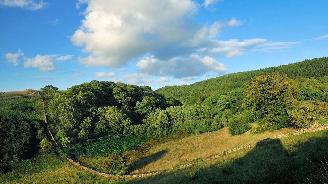 A second kissing gate leads onto a surfaced path up Gallows Law to a viewpoint, where there is a picnic bench. There is a further entrance at the east of the wood, following Bennet’s Burn through a field gate.