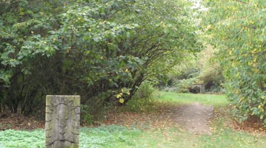 It is small with mixed native and non-native species. However, in the centre is an impressive veteran tree with an historic plaque. Worth combining visiting this wood with Cock Robin Wood just a few 100 yards down the road. You are probably best parking at Cock Robin Wood and walking to this wood, otherwise parking is on a housing estate.