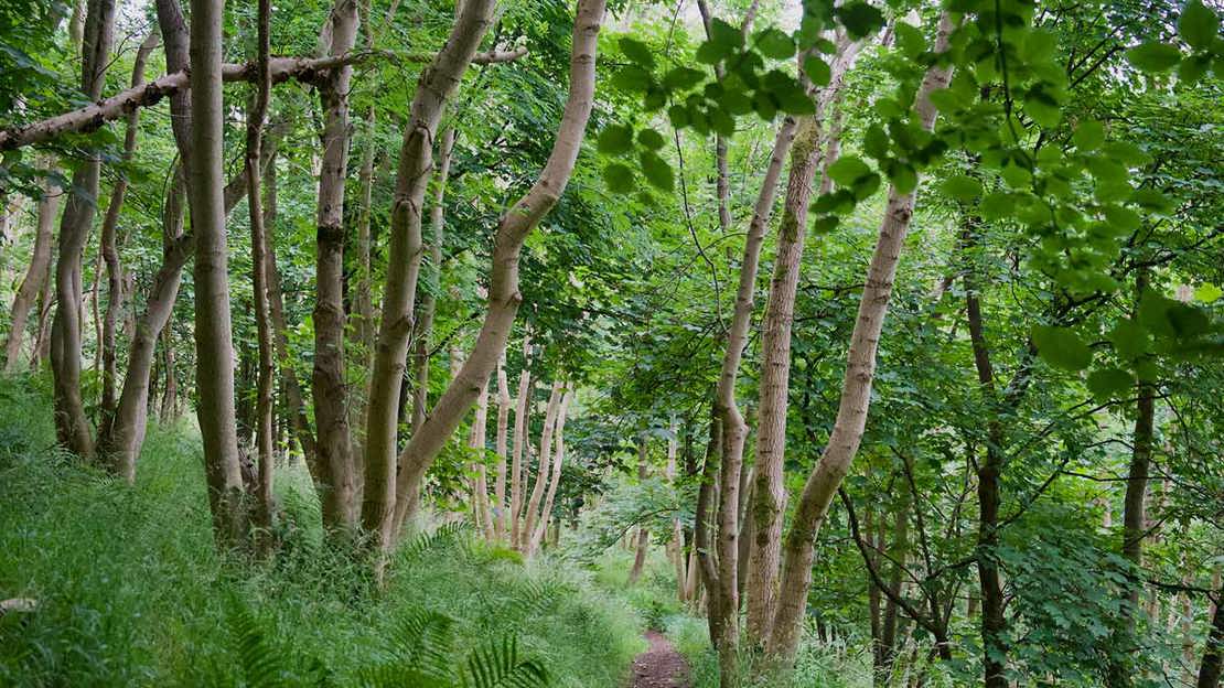 The two southern entrances to the wood are adjacent to the Clackmannanshire Council car park at the Woodland Park, an adjoining woodland managed by the council. Follow the A91 to the eastern end of Alva, then take the minor road signposted 'Woodland Park'. The Woodhill Wood car park can be found 1km (0.6 miles) along this road. Access to the wood is located opposite the car park.
